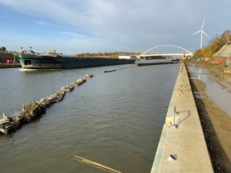 De werken aan de kanaalbrug schieten goed op. Het wegdek en de fietspaden beginnen al vorm te krijgen aan de op en afrit van de brug. Ook de landhoofden zijn bijna klaar. Tegelijkertijd zijn de werken voor de verbreding van het kanaal in volle gang. Het inkloppen van de damplanken en het betonwerk is beter meegevallen als gedacht. De werken zitten nog volledig op schema, en het invaren van de brug gaat gebeuren op zondag 11 december. De nieuwe brug, die nu dienstdoet als tijdelijke fietsbrug, wordt vanaf 28-11 afgesloten voor het fietsverkeer. De vooropgestelde opening van de brug voor alle verkeer, net voor Kerstmis, is nog steeds een realistische gegeven, laat de aannemer nog weten.